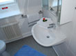 - 1 Küche mit Essecke. Zur Ausstattung gehören unter anderem ein Herd (ohne Backofen), Kühlschrank mit Eisfach, Mikrowelle, Kaffeemaschine, Wasserkocher, Eierkocher, Toaster und ein Radio